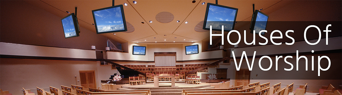 - Places of worship also require flexible control and programming systems with easy-to-use one-touch speaker and camera controls and video displays